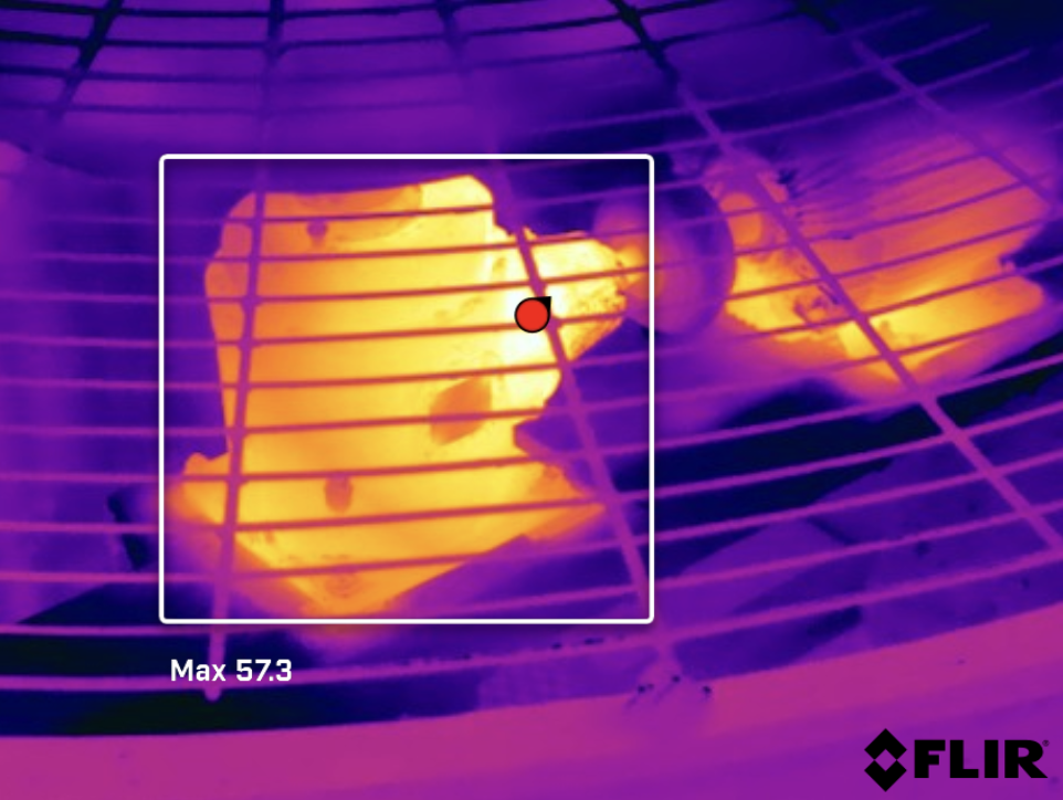 To verify the fan’s speed, I used my iPhone camera set at 30 fps and observed the blade movement. Because the blades appeared to move slowly rather than blur or appear stationary, it indicated that the fan’s rotational speed was slower than the camera’s frame rate of 30 Hz (about 1,800 RPM). This confirmed that my thermal camera, which also operates at 30 Hz, would be able to capture thermal images of the motor behind the blades with reasonable clarity.