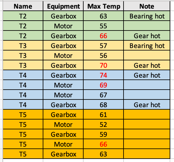 T4 looks like it has misalignment. Both gear box and motor bearings are hot.