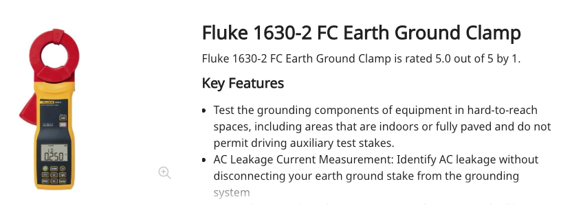 The next purchase will be the FLUKE 1630-2FC Earth Ground Clamp.