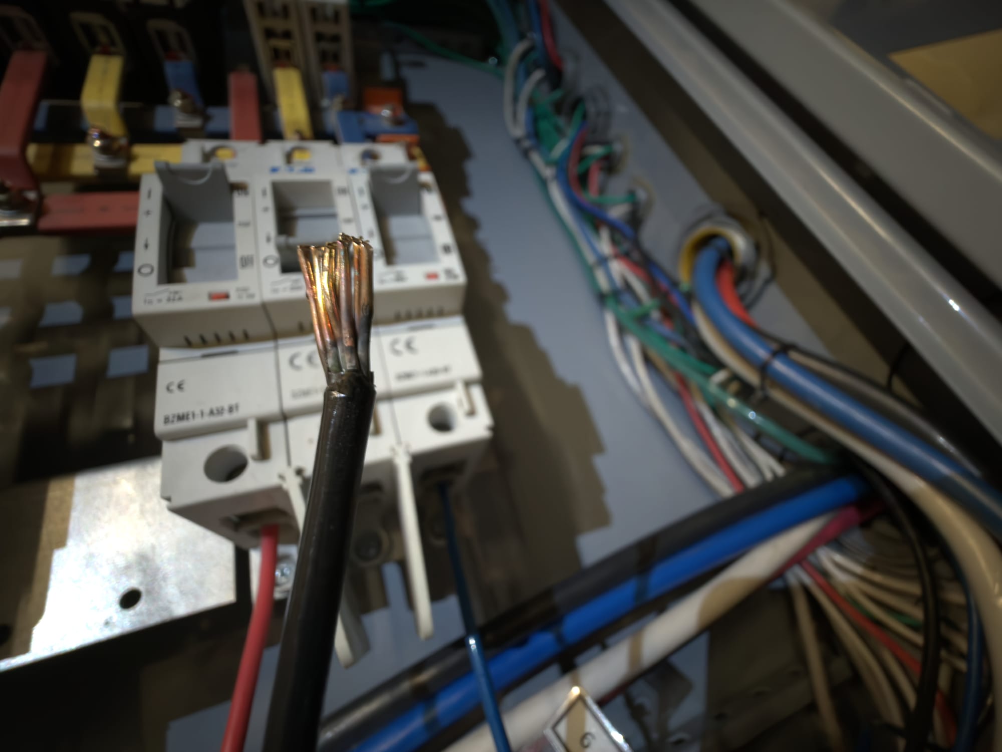 This is how it looked like after clipping the tip and re-terminating. Amperage readings measured 11A instead of 13A.
